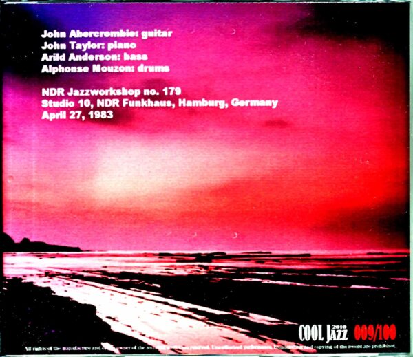This powerful item has been released, featuring a superb high quality stereo soundboard recording of an intense performance that surpasses even Andersen’s 1981 “Molde Concert” and in a good way overturns the image of the members at that time! … This Andersen project was thought to be a one-off, but in fact, two years later, in 1983, the guitarist was replaced by John Abercrombie, who also performed with Andersen (maybe just once?). This rare project was held on April 27th at NDR in Hamburg, Germany, and this two-disc set contains a complete recording of over an hour and a half of this incredible live performance, meticulously mastered by the label on a superb high quality stereo soundboard!!!