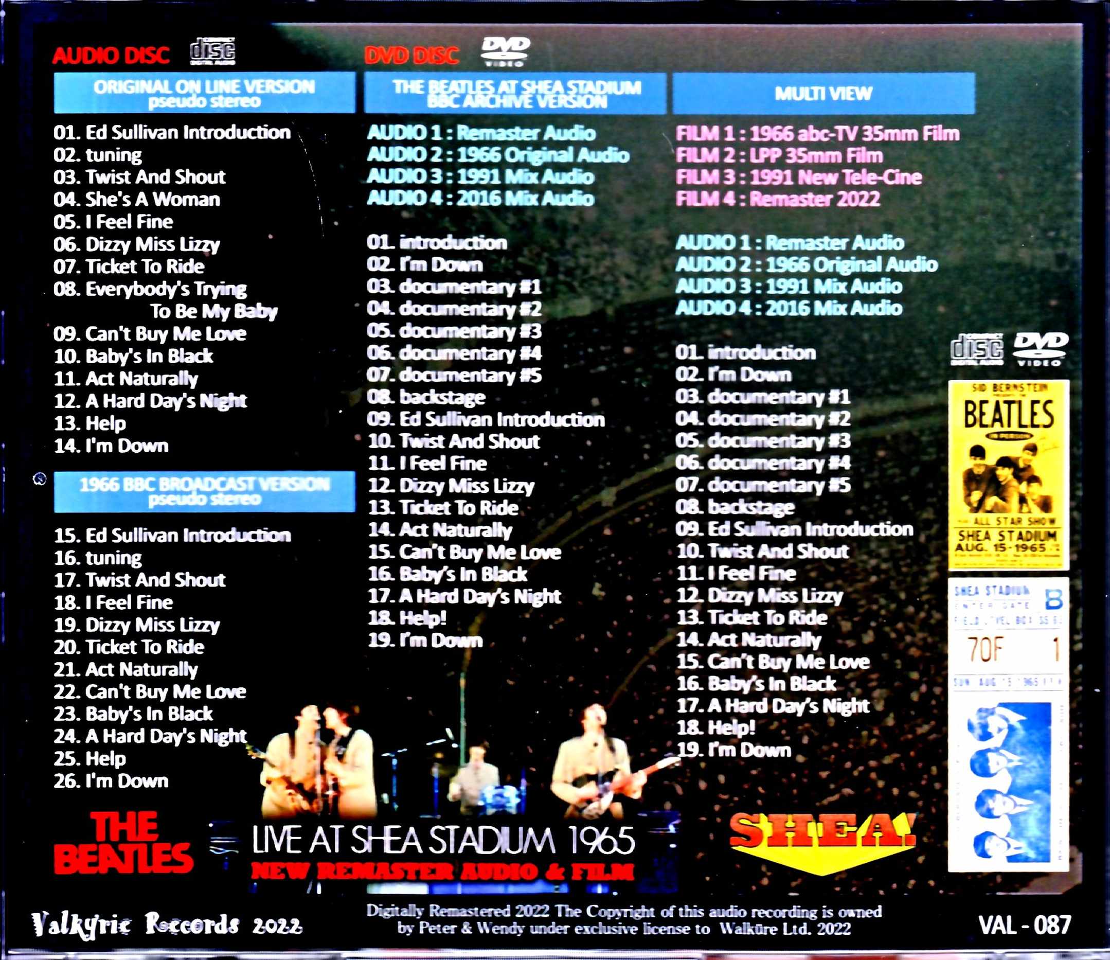 I think many people already have the Beatles’ Share Stadium in some form, but this work is different from them and is the best ever. First, about the CD part. Previous sound sources only had a mono sound with the vocals in the center, but this work has a sound that brings out the stereo feeling more clearly. It has a balanced sound quality and sound image that has never been seen before. You can see that the image is sharp and the contours of the image are clear. In addition to the clarity of the screen, it also has excellent color development, such as the bluish night sky reflected by the cocktail light. The audio has also been remastered with high sound quality that overturns conventional wisdom by introducing the latest AI technology. The CD achieves high sound quality with a balanced stereo feeling. The DVD is recorded with a new master with unprecedented high image quality. It is recorded with new images with clear contours and rich color in every detail. AI technology has also been introduced for the audio, reproducing even sounds that were recorded on tape but were buried deep inside, achieving a balanced high sound quality. This is the definitive version of the Beatles’ Share Stadium. Newly mastered in unprecedented high-definition video and a choice of four audio tracks. The Beatles / Live at Shea Stadium 1965: New Remaster (1CD+1DVD) Audio Disc Original Online Line Version pseudo stereo 01. Ed Sullivan Introduction 02. tuning 03. Twist And Shout 04. She’s A Woman 05. I Feel Fine 06. Dizzy Miss Lizzy 07. Ticket To Ride 08. Everybody’s Trying To Be My Baby 09. Can’t Buy Me Love 10. Baby’s In Black 11. Act Naturally 12. A Hard Day’s Night 13. Help 14. I’m Down 1966 BBC Broadcast Version pseudo stereo 15. Ed Sullivan Introduction 16. tuning 17. Twist And Shout 18. I Feel Fine 19. Dizzy Miss Lizzy 20. Ticket To Ride 21. Act Naturally 22. Can’t Buy Me Love 23. Baby’s In Black 24. A Hard Day’s Night 25. Help 26. I’m Down DVD DISC THE BEATLES AT SHEA STADIUM BBC ARCHIVE VERSION AUDIO 1 : Remaster Audio AUDIO 2 : 1966 Original Audio AUDIO 3 : 1991 Mix Audio AUDIO 4 : 20 16 Mix Audio 01. introduction 02. I’m Down 03. documentary #1 04. documentary #2 05. documentary #3 06. documentary #4 07. documentary #5 08. backstage 09. Ed Sullivan Introduction 10. Twist And Shout 11. I Feel Fine 12. Dizzy Miss Lizzy 13. Ticket To Ride 14. Act Naturally 15. Can’t Buy Me Love 16. Baby’s In Black 17. A Hard Day’s Night 18. Help! 19. I’m Down MULTI VIEW FILM 1 : 1966 abc-TV 35mm Film FILM 2 : LPP 35mm Film FILM 3 : 1991 New Tele-Cine FILM 4 : Remaster 2022 AUDIO 1 : Remaster Audio AUDIO 2 : 1966 Original Audio AUDIO 3 : 1991 Mix Audio AUDIO 4 : 2016 Mix Audio 01. introduction 02. I’m Down 03. documentary #1 04. documentary #2 05. documentary #3 06. documentary #4 07. documentary #5 08. backstage 09. Ed Sullivan Introduction 10. Twist And Shout 11. I Feel Fine 12. Dizzy Miss Lizzy 13. Ticket To Ride 14. Act Naturally 15. Can’t Buy Me Love 16. Baby’s In Black 17. A Hard Day’s Night 1 8. Help! 19. I’m Down