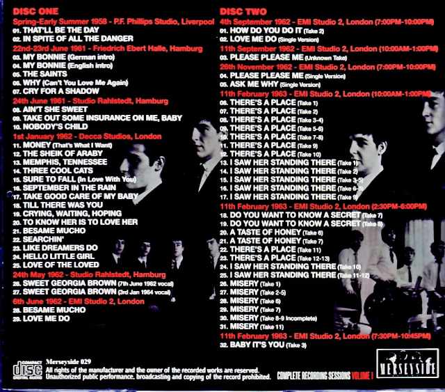 The “COMPLETE RECORDING SESSIONS” series, which compiled the surprisingly vast number of early Beatles recordings in chronological order, was highly praised by fans as an extremely convenient and easy-to-listen-to compilation. However, nearly a decade has passed since its release. During this time, many upgraded recordings have been unearthed, and it’s undeniable that the 2017 release now feels outdated. A new version of this compilation of early recordings, which had been eagerly awaited, has finally arrived! This is a rebirth that goes beyond the realm of a simple re-release. As a result of a major overhaul of both the audio and content, this “Vol. 1” is a new version that combines the previous “Vol. 0” and “Vol. 1”. Therefore, while the previous version started with sessions with Tony Sheridan, this one starts with two acetate tracks by The Quarrymen. These two tracks were officially released in demixed versions at the end of last year, which brought out the contours of the performance and John’s vocals more clearly than before on the old acetate. However, it’s also true that reverb was added to the 1957 recording, giving it a pseudo-stereo feel. So this time, based on the 2025 remaster, the reverb has been removed and it has been recorded in mono. The contours are clearer, while the texture and sound quality characteristic of the 1957 self-produced acetate have been restored. As for the Decca auditions, the previous release was based on the file “NEVER MIND THE TREMELOES” from 15 years ago, but this time we’ve used “UNPROCESSED DECCA AUDITION TAPE,” the first release which was a huge hit and sold out quickly as the best version of the Decca auditions (only the slight distortion in the intro of “Money” has been corrected). Not only is the sound quality improved, but for those who missed out on the previous release which sold out, this is an unparalleled, and even a great bargain (lol). And for “Besame Mucho” from the EMI audition, this time the 2011 official remastered version, which was previously only available digitally, is combined with the original ending that could only be heard on “1,2,3,4!”, the prototype for “SESSIONS”. However, the hiss noise after the connection was noticeable in the previous version, but this time, thanks to the latest technological advancements, it has been remastered and completely eliminated. Paul’s voice, which rises towards the end, can now be heard more clearly and distinctly. These changes mean that Disc 2 starts with the sessions for their debut single, which took place in September 1962. The sessions for their first album, “PLEASE PLEASE ME”, which make up the majority of this disc, are also compiled using the latest 2026 files that MasterJedi just released, ensuring that the entire recording is in the best quality. Not only are Roger Scott’s recordings used, but the lossless version of “Bootleg Recordings 1963”, which was previously only available on iTunes, and “Take It Off (HMC)” are also used to construct the longest and best session recordings, leaving no stone unturned. “I Saw Her Standing There [take 2],” which first appeared on “ULTRA RARE TRAX Vol.1” and has now become a major hit as the opening track of “ANTHOLOGY 4,” has been remixed and remastered, resulting in a sound that makes you feel as if you’re listening to the performance from the control room. However, this version offers a raw, visceral feel that makes you feel like you’re listening to the Beatles perform right in front of you. What was impossible with the previous release in 2017 is the pre-overdubbed versions of “Misery” and “Baby It’s You.” These are based on files created by the familiar Lord Reith, recreating the original band performance before George Martin added piano and celesta. By including these, the album has been reborn as a more complete compilation of early Beatles recording sessions. Needless to say, the entire album is recorded in perfect sound quality, and it even incorporates the masterpiece “UNPROCESSED DECCA AUDITION TAPE,” making it an even more comprehensive collection. This is the ultimate collection of Beatles recording sessions for a new generation! Changes from the previous release: Disc 1 adds “That’ll Be The Day” and “In Spite Of All The Danger” from the Quarrymen era. Mono version based on the 2025 Anthology 1 source. The Decca audition has been replaced with the audio from “Unprocessed Decca Audition Tape (Merseyside 001)” instead of “NEVER MIND THE TREMELOES”. Track 22 “Besame Mucho” has been remastered. Tape hiss at the “1,2,3,4!” part of the ending has been made less noticeable. Disc 2 incorporates the Disc 1 portion of the previous Volume 1 release. The source has been replaced with the latest version of MasterJedi “Complete Recording Sessions Vol 02 (V4)” updated in 2026. “Misery [take 11]” and “Baby It’s You [take 3]” are added from Lord Reith’s “FABRACADABRA! Vol 1” Disc 1(72:35) *spring-early summer 1958 – P. F. Phillips Studio, Liverpool 01 That’ll Be The Day 02 In Spite Of All The Danger *22nd-23rd June 1961 – Friedrich Ebert Halle, Hamburg 03 My Bonnie (German intro) 04 My Bonnie (English intro) 05 The Saints 06 Why (Can’t You Love Me Again) 07 Cry For A Shadow *24th June 1961 – Studio Rahlstedt, Hamburg 08 Ain’t She Sweet 09 Take Out Some Insurance On Me, Baby 10 Nobody’s Child *1st January 1962 – Decca Studios, London 11 Money (That’s What I Want) 12 The Sheik of Araby 13 Memphis, Tennessee 14 Three Cool Cats 15 Sure To Fall (In Love With You) 16 September In The Rain 17 Take Good Care of My Baby 18 Till There Was You 19 Crying, Waiting, Hoping 20 To Know Her Is To Love Her 21 Besame Mucho 22 Searchin’ 23 Like Dreamers Do 24 Hello Little Girl 25 Love of The Loved *24th May 1962 – Studio Rahlstedt, Hamburg 26 Sweet Georgia Brown [7th June 1962 vocal] 27 Sweet Georgia Brown 
