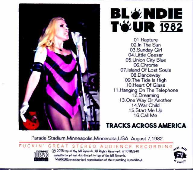 This rare recording features a complete stereo audience recording of the Minneapolis performance from their final tour in 1982, which coincided with the release of their sixth album, “THE HUNTER.” This rare recording features a live performance from the “Tracks Across America Tour ’82,” a tour held at Parade Stadium, a soccer stadium in Minneapolis, Minnesota, on August 7, 1982, with a capacity of approximately 16,560 people. Directly digitally transferred from the low-quality cassette master, it offers exceptional sound quality that could be considered top-notch for the time, with a crisp, clear sound image reminiscent of a line recording. The vocals and each part are well-balanced, resulting in the clear sound characteristic of an outdoor performance. Pitch discrepancies caused by the master have also been carefully corrected. This tour, which promoted the album “THE HUNTER,” ended up consisting of only 19 North American dates due to the cancellation of a planned European leg due to poor ticket sales. Chris Stein fell ill during the tour, and the band disbanded shortly thereafter, making this their final tour. Frank Infante also sat out this tour due to conflicts within the band, and was replaced by Eddie Martinez. The setlist included three tracks from the then-new “THE HUNTER” album, along with tracks from their previous album “AUTOAMERICAN” (“Chrome,” from Debbie Harry’s solo album, the opening track “Rapture,” and the single “The Tide Is High”). It also featured the hit single “Call Me,” and a cover of the Rolling Stones’ “Start Me Up”! Experience a superb performance with a stellar lineup, complete with a horn section! Parade Stadium,Minneapolis,Minnesota,USA August 7,1982 01.Rapture 02.In The Sun 03.Sunday Girl 04.Little Caesar 05.Union City Blue 06.Chrome 07.Island Of Lost Souls 08.Danceway 09.The Tide Is High 10.Heart Of Glass 11.Hanging On The Telephone 12.Dreaming 13.One Way Or Another 14.War Child 15.Start Me Up 16.Call Me