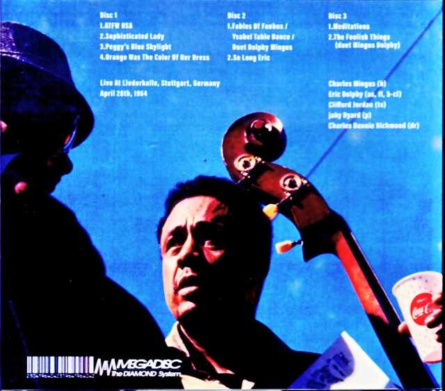 Previously released only incompletely, the 1964 Stuttgart, Germany, performance has received a stunning upgrade and is now available in a 2 hour 39 minute long, pitch-corrected remaster. Looking back, four tracks were released on “Unique Jazz” in 2000, eight on “Get Back/Jazz” in 2007, and then a rebroadcast that was considered the definitive edition by enthusiasts was released on “Mega Disc.” This was the Stuttgart performance that was thought to be the end of the story. However, a look at the setlist from the day revealed discrepancies in recording times and missing tracks. Now, with the help of overseas enthusiasts, the entire show is finally here for the first time. This is the definitive edition, recorded from the opening “ATFW USA” to the final “The Foolish Things” with pitch-corrected broadcast sound sources, which were not broadcast on the rebroadcast. While there are different broadcast sound sources and some tracks have slight differences in sound quality, there is currently no sound source that surpasses this title. Live at Liederhalle, Stuttgart, Germany 04/28/1964 Disc 1 1. ATFW USA (4:16) 2. Sophisticated Lady (4:15) 3. Peggy’s Blue Skylight (20:50) 4. Orange Was The Color Of Her Dress (17:25) Disc 2 1. Fables Of Faubus / Ysabel Table Dance / Duet Dolphy Mingus (43:51) 2. So Long Eric (30:27) Disc 3 1. Meditations (30:38) 2. The Foolish Things (duet mingus Dolphy) (7:37) Charles Mingus (b) Eric Dolphy (as, fl, b-cl) Clifford Jordan (ts) Jackie Byrd (p) Charles Daniel Richmond (dr)