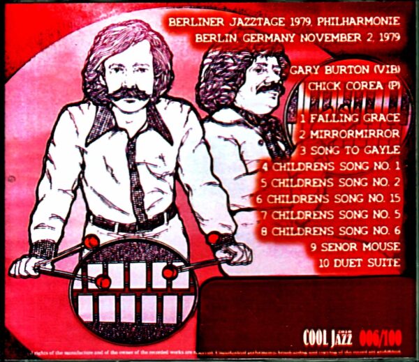 Live at Berliner Jazztage 1979,Philharmonie Berlin,Germany November.2.1979 Gary Burton (VIR) Chick Corea (P) 1. Falling Grace 2. Mirror Mirror 3. Song to Gayle 4. Children’s Song No.1 5. Children’s Song No.2 6. Children’s Song No.15. 7. Children’s Song No.5 8. Children’s Song No.6 9. Senor Mouse 10. Duet Suite