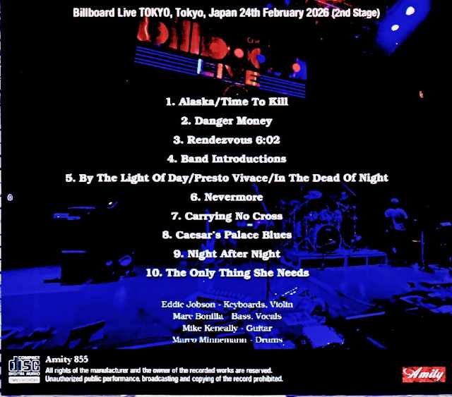 This release features a 79-minute full recording of the second show in Tokyo on February 24th, the momentous first day of U.K.’s revival tour in 2026, using a high-quality audience master released by the taper. U.K. had previously disbanded after their 2015 reunion tour, and with the death of John Wetton in 2017, a reunion with the original members became impossible. Eddie himself also suspended his concert activities after 2018. After eight years of silence, he finally made a comeback, and his first stage performance was, of course, in Japan, where he has many fans. The tour consisted of two shows a day for four days, for a total of eight performances, and this release perfectly recreates the performance from that first day in ultra-clear soundboard quality. The highly anticipated setlist was a truly sublime one, almost perfectly recreating both of their UK studio albums. From “The Four Men of War,” they performed every song except “Thirty Years” and “Mental Medication,” interspersed with medleys, and from “Danger Money,” they played every song except “Nothing to Lose,” making it an irresistible treat for longtime fans. The support members for this tour were also incredibly strong, with Mark Bonilla, formerly of the Keith Emerson Band, in John Wetton’s position, Mike Kennelly, the last guitarist in Frank Zappa’s band, on guitar, and Marco Minnemann, a multi-instrumentalist who has released numerous solo albums—a gathering of seasoned veterans here in Japan. Furthermore, there were some set changes each day for these Japanese performances, and on this particular day, “Night After Night,” which wasn’t in the first show, was played near the end of the second show, making it a limited-time memorial item that fans will want to check out at every performance. Live at Billboard Live TOKYO, Tokyo, Japan 24th February 2026 (2nd Stage) : from Original Masters 1. Alaska / Time to Kill 2. Danger Money 3. Rendezvous 6:02 4. Band Introductions 5. By the Light of Day / Presto Vivace / In the Dead of Night 6. Nevermore 7. Carrying No Cross 8. Caesar’s Palace Blues 9. Night After Night 10. The Only Thing She Needs Eddie Jobson (Key,Vln) / Marc Bonilla (Vo,Ba) / Mike Keneally (Gt) / Marco Minnemann (Dr)