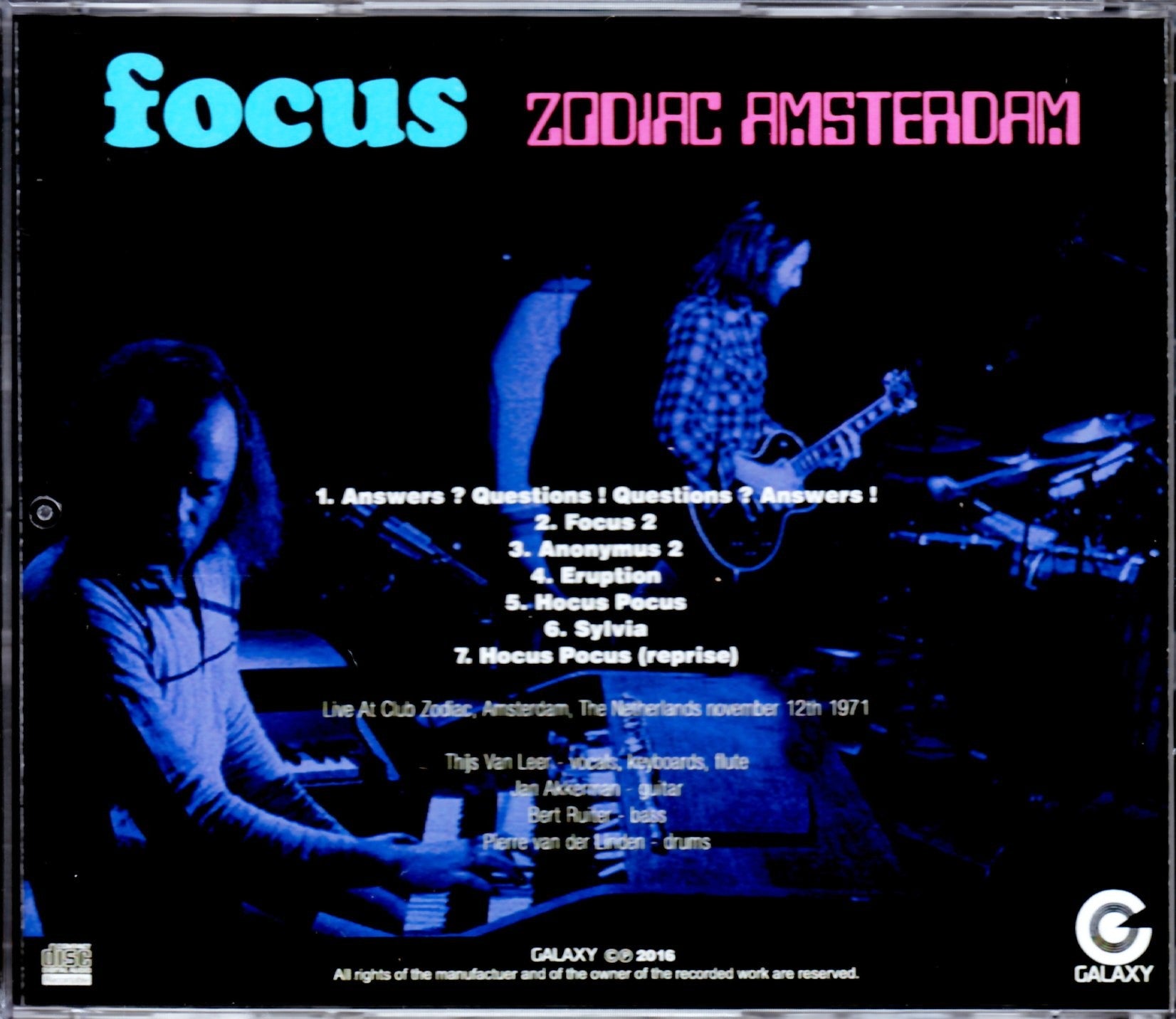 The first appearance of a newly discovered live sound source of FOCUS, a progressive band representing the Netherlands that first entered the United States in the 1970s! The performance at Club Zodiac in Amsterdam, Netherlands on November 12, 1971 was recorded from the highest quality audience recording master at the time. There are surprisingly few live sound sources like this in the home country, and this is the first sound source that attracts collectors’ attention. We bring you a rare live performance of FOCUS in 1971 that captures Theis Van Leer’s yodeling voice and Jan Ackermann’s transcendent and elegant guitar. Live At Club Zodiac, Amsterdam, The Netherlands november 12th 1971 1. Answers ? Questions ! Questions ? Answers !/2. Focus 2/3. Anonymus 2/4. Eruption/5. Hocus Pocus/6. Sylvia/7. Hocus Pocus (reprise)