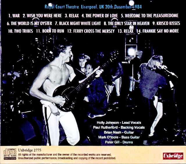 Frankie Goes to Hollywood, who became instant sensations in 1984 with their sensational debut, now have a superb recording capturing their glorious return to their hometown. This recording captures their “Liverpool performance on December 20, 1984,” a superb audience recording. Their initial burst of success was truly spectacular. To fully appreciate that momentum, let’s first take a look at their activities at the time and explore the position of this recording within that context. 1984 – May 22nd – September 18th: Appearances in various media (October 29th: “WELCOME TO THE PLEASUREDOME” released) – October 30th – December 5th: North America #1 (24 performances) – December 20th – 22nd: Liverpool (3 performances) ←★HERE★ – December 31st: Appearance on MTV 1985 – February 8th: Appearance at Sanremo Music Festival – March 12th – April 29th: Europe (32 performances) – May 10th: Appearance at Golden Rose – May 11th – June 22nd: North America #2 (30 performances) – June 28th – July 4th: Japan (6 performances) – November 9th: Appearance on Peter’s Pop Show (November: Production of “LIVERPOOL” begins) Clear sound that is easy to listen to, like FM broadcast This is an overview of their activities from their debut year to the following year. After achieving three consecutive number one singles in the UK—”Relax,” “Two Tribes,” and “The Power of Love”—they released their debut album, “WELCOME TO THE PLEASUREDOME,” in October. Immediately afterward, they embarked on a North American tour. This recording was made in the midst of that success story, at the first of three consecutive shows in their hometown of Liverpool, a triumphant return. This recording, which vacuum-packs that show, is an incredibly clear and superb recording. The atmosphere is crystal clear, and the core that pierces right through it is powerful, dense, and full of impact. There is not a trace of cloudiness or muddiness in the crisp outlines, and the sense of separation is tremendous. In fact, as you immerse yourself in it, you start to forget whether you are listening to a live recording or an FM broadcast. The audience noise reinforces this FM broadcast feel. It captures the high-pitched screams of their immense popularity, but it is strangely distant. The performance sounds incredibly direct, and you get the feeling that there’s a commotion happening far beyond the vocals, creating a balance that makes it seem as if it were recorded backstage or in the wings. A live performance version of WELCOME TO THE PLEASUREDOME The show, depicted with such super clear and lucid sound, is a stage that could be described as a “live performance version of WELCOME TO THE PLEASUREDOME.” They performed all 16 songs from the album except for “(Tag),” “San Jose (The Way),” and “The Ballad of 32.” Including cover songs such as “War” and “Born to Run,” which were also on the album, they elevated the world of “Pleasuredome” that they presented at the time with stage tension. The audacity of performing the mega-hit “Relax” twice is also something that could only be seen in the momentum of that time. You can enjoy the 100% pure “WELCOME TO THE PLEASUREDOME world.” A triumphant return to their hometown of Liverpool to conclude their sensational debut year. This is a treasured live album that vacuum-seals the live performance with crystal-clear sound comparable to FM broadcasting. Experience the exhilarating feeling of being in the 100% pure “WELCOME TO THE PLEASUREDOME” world. A superb audience recording of the Liverpool concert on December 20, 1984. A masterpiece with crystal-clear sound that could easily be mistaken for an FM broadcast, allowing you to fully experience the 100% pure stage performance featuring 13 of the 16 songs from “WELCOME TO THE PLEASUREDOME”. This is a treasured album that concludes their sensational debut year, which saw three consecutive UK number one albums. Royal Court Theatre, Liverpool, UK 20th December 1984 (71:49) 1. War 2. Wish You Were Here 3. Relax 4. The Power of Love 5. Welcome to the Pleasuredome 6. The World Is My Oyster 7. Black Night White Light 8. The Only Star in Heaven 9. Krisco Kisses 10. Two Tribes 11. Born to Run 12. Ferry Cross the Mersey 13. Relax 14. Frankie Say No More