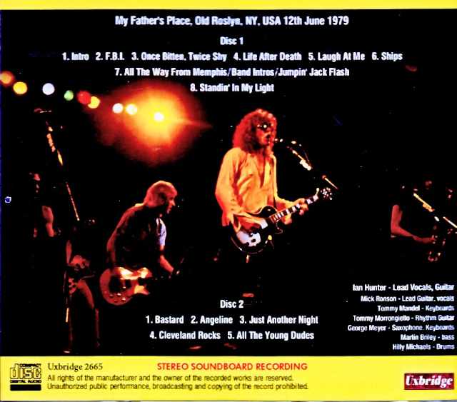 In 1979, Ian Hunter was in the midst of a huge success, releasing the masterpiece “Instigator of Violence” with his ally Mick Ronson. Now, here comes a soundboard album that will let you experience that live performance in your mind. This work was recorded at the “June 12, 1979 Roslyn Concert.” It is a stereo soundboard recording. Speaking of the 1979 live performance, the official classic “Welcome to the Club” is undoubtedly the most iconic, and the 30th anniversary deluxe edition of “Instigator of Violence” also included a live disc. However, this album is a completely different performance that does not overlap with either of those. To understand the situation, let’s first take a bird’s-eye view of their activities at the time. “Instigator of Violence” released on March 27th: June 10th: New Haven performance * June 12th: Roslyn performance ←★This work★ June 13th-17th: North America (4 performances) * June 18th: Cleveland performance ←※7 official songs June 19th-July 5th: North America (10 performances) * July 7th: Berkeley performance ←※2 official songs July 8th-November 3rd: North America (45 performances) * November 5th-11th: North America (7 performances) ←※Official WELCOME TO THE CLUB * November 22nd: London performance ←※5 official songs A newly discovered pre-FM master that updates the highest peak. This is Ian Hunter in 1979. The final performance was at Hammersmith Odeon in his native England, but all others were North American-only. The Roslyn performance in this work was the second performance of the tour, earlier than any of the official live works. This show is also known for its FM broadcast, and this release is its latest and greatest update. It was digitized directly from the recently released pre-FM soundboard master. In fact, the sound is the best ever. Compared to the official “WELCOME TO THE CLUB,” the mix balance has a vivid, one-shot feel, but the soundboard’s richness, with all instruments super clear and beautifully separated, is fully open. Above all, it’s beautiful. As a pre-FM master that has never even been on the airwaves, let alone dubbed, there’s no reception noise or distortion like with previous masters, and the entire show is smooth, lustrous, and extremely stable. Even though it’s a pre-FM soundboard, the cheers are perfectly mixed, allowing you to fully experience the intense heat of a club gig. A pinnacle work that pairs with WELCOME TO THE CLUB. Such a superb pre-FM sound depicts a stage that is similar but not identical to “WELCOME TO THE CLUB.” Let’s organize the album by comparing it with the “Instigator of Violence” and the Dela Eddie live disc. Instigator of Violence (6 songs): Life After Death (★), Ships (★*), Standin’ In My Light (*), Bastard, Just Another Night, Cleveland Rocks. Others (4 songs + 2 songs): Mott the Hoople era: Laugh at Me, All the Way From Memphis (incl. Jumpin’ Jack Flash), Angeline (*), All the Young Dudes. Others: F.B.I., Once Bitten, Twice Shy. Note: Tracks marked with a “★” were not included on the traditional “Welcome to the Club” album. Tracks marked with a “*” were not included on the 30th anniversary deluxe edition of “Instigator of Violence.” While “Welcome to the Club” was compiled from multiple shows towards the end of the tour, this album is a soundboard album shot in one take at the very start of the tour, just the second show. Despite being set in contrasting environments, this is a new masterpiece from the golden age that pairs with the official masterpiece. This stereo soundboard recording of the “June 12, 1979 Roslyn Concert” is a top-of-the-line update directly digitized from the pre-FM soundboard master, offering a smooth, lustrous, and stable sound throughout. “Life After Death” and “Ships,” not included on “WELCOME TO THE CLUB,” are also delicious, making this a new masterpiece from the golden age that pairs with the official work. My Father’s Place, Old Roslyn, NY, USA 12th June 1979 STEREO SBD Disc 1 (44:50) 1. Intro 2. F.B.I. 3. Once Bitten, Twice Shy 4. Life After Death 5. Laugh At Me 6. Ships 7. All The Way From Memphis / Band Intros / Jumpin’ Jack Flash 8. Standin’ In My Light Disc 2 (40:05) 1. Bastard 2. Angeline 3. Just Another Night 4. Cleveland Rocks 5. All The Young Dudes STEREO SOUNDBOARD RECORDING Ian Hunter – Lead Vocals, Guitar Mick Ronson – Lead Guitar, vocals Tommy Mandel – Keyboards Tommy Morrongiello – Rhythm Guitar George Meyer – Saxophone, Keyboards Martin Briley – bass Hilly Michaels – Drums