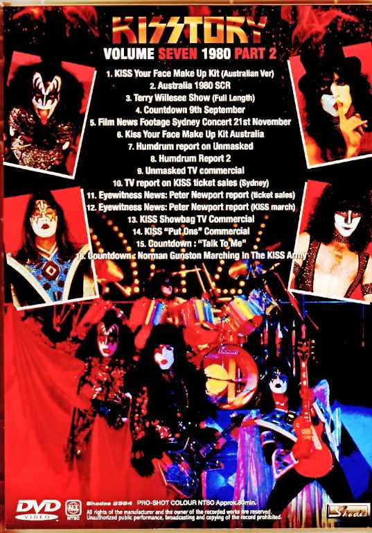 In tribute to Ace Frehley, the original guitarist of KISS, who passed away in October 2025, here is Part 2 of the seventh installment of the ultimate compilation video, featuring 1 hour and 20 minutes of rare footage from the time of the 1980 album “UNMASKED,” all in the best master quality. This compilation was compiled by an overseas KISS researcher who selected and edited a vast amount of video material using the latest equipment. Since a considerable amount of footage remains from the “UNMASKED” period, which will become “VOLUME SEVEN,” it has been divided into Parts 1, 2, and 3, bringing together various rare videos such as TV appearances and tour live performances from that time in chronological order. Part 2 compiles rare TV footage related to the early 1980 Oceania tour, including special programs leading up to the tour, pro-shot footage of rare performances, TV reports, and commercials—a collection of previously unknown and valuable footage from the ‘UNMASKED’ era. 1. KISS Your Face Make Up Kit (Australian Ver) [The make-up kit was sold in a different way in Australia. This is the very different Australian commercial.] 2. Australia 1980 SCR [Great pre-tour footage of Kiss coming to Australia off master reel.] 3. Terry Willesee Show (Full Length) [The complete two parts of the Willesee show off master] 4. Countdown 9th September [This is famous Kiss television and a newly uploaded video from the channel. It is in superb quality, Australia-only videos of Is That You? and Talk To Me.] 5. Film News Footage Sydney Concert 21st November [This is a complete reel of an unused pro-shot of the 1st night in Sydney. Very different to the well known complete second night pro shot.] 6. Kiss Your Face Make Up Kit Australia [Different version and off master] 7. Humdrum report on Unmasked 8. Humdrum Report 2 [Both of the Humdrum reports by Countdown’s Molly announcing the tour] 9. Unmasked TV commercial [Different Australia only tv commercial for the Unmasked album.] 10. TV report on KISS ticket sales (Sydney) [Off master] 11. Eyewitness News: Peter Newport report (ticket sales) [Different ticket sales report off master] 12. Eyewitness News: Peter Newport report (KISS march) [We all seen in The Inner Sanctum the 1000’s of kids in the streets. Here is the complete newsreel of that infamous Kiss march.] 13. KISS Showbag TV Commercial [Kiss sold Australia exclusive concert bags filled with merchandise and a Australia only exclusive Kiss Disco Wig. Here is the TV commercial for one of the rarest Kiss merchandising] 14. KISS“Put Ons”Commercial [Another Australia exclusive TV commercial for Kiss Put Ons that came with breakfast cereal. Put Ons are stickers you can stick over and over again] 15. Countdown :“Talk To Me” [Different broadcast of the Talk To Me Australia exclusive video off master.] 16. Countdown : Norman Gunston Marching In The KISS Army [Off master video of Norman Gunston’s Australian hitsingle “Marching In The KISS Army”. Performed live and taken off master.] PRO-SHOT COLOR NTSC Approx.80min.