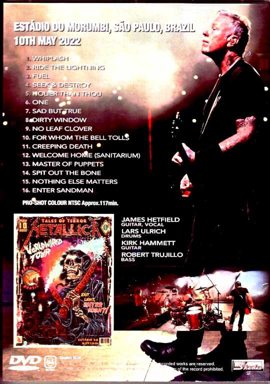 In the HR/HM scene, which has overcome the corona pandemic and resumed its large-scale world tour that had been postponed and canceled, Metallica’s 2022 South American tour, May 10, Sao Paulo, Brazil, was recorded in full for 1 hour and 57 minutes in official quality, professional shot video. First of all, from this South American tour, Chile and Argentina, and Brazil, including this performance, all six performances, including the main performance, have been leaked from the master video from the WEB broadcast, and this time, the second day in Brazil is reproduced with a balanced angle like a professional shot for broadcasting, and the switching is perfect, so it can be officially released as it is. And on this day, the extraordinary excitement unique to Brazil was tremendous, and the pattern was reproduced with perfect camerawork and sound mix, and the spectacle of the huge building-class monitors and the large crowd of tens of thousands was overwhelming. The live show was a set of killer tunes from the past based on the 40th anniversary of the band’s formation last year, and the South American tour featured different sets each day. The selection on this day was wide-ranging, including the early “Whiplash” and “Creeping Death,” the mid-period “Holier Than Thou,” “Fuel,” and “No Leaf Clover,” as well as the recent “Spit Out The Bone.” In particular, the rare number “Dirty Window,” which is said to be played once every 10 years, was also played in the middle, making this a must-see item for fans. Live at Estadio do Morumbi, Sao Paulo, Brazil 10th May 2022 : PRO-SHOT COLOUR NTSC Approx.117min 1. Whiplash 2. Ride The Lightning 3. Fuel 4. Seek & Destroy 5. Holier Than Thou 6. One 7. Sad But True 8. Dirty Window 9. No Leaf Clover 10. For Whom The Bell Tolls 11. Creeping Death 12. Welcome Home (Sanitarium) 13. Master Of Puppets 14. Spit Out The Bone 15. Nothing Else Matters 16. Enter Sandman