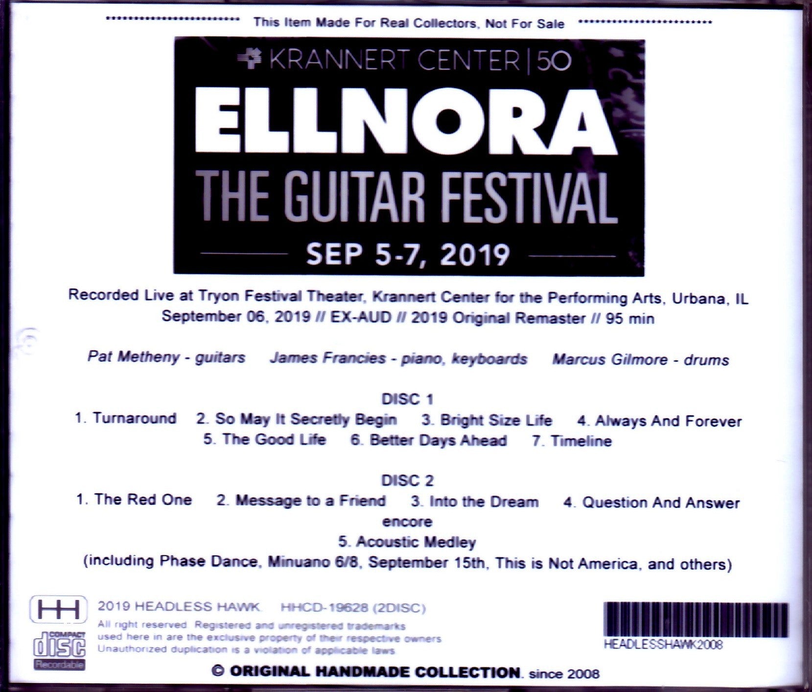 Enjoy the latest live performance, which was performed at a festival in the suburbs of Chicago with the participation of new drummer Marcus Gilmore, in great quality that allows you to hear even the delicate guitar tones from the digitally recorded audience sound source. A 2-disc set of live music has been released. First of all, from the beginning, Metheny introduces Marcus Gilmore, a new member, to the audience in the venue. He is the grandson of jazz legend Roy Haynes and is a drummer who has attracted the attention of jazz fans for his participation in bands such as Chick Corea and Steve Coleman. Compared to his former drummer, Nate Smith, his edgy playing stands out. This year, the stage consisted of a different set list from the January performance in Japan, and the famous song “Bright Size Life” that was not played was played, and this is something to listen to. A new album officially recorded in the studio has also been announced, so keep an eye on Metheny’s movements this year! ! Live at Tryon Festival Theater, Urbana, IL 09/16/2019 Disc 1 1.Turnaround 2.So May It Secretly Begin 3.Bright Size Life 4.Always And Forever 5.The Good Life 6.Better Days Ahead 7.Timeline Disc 2 1.The Red One 2.Message to a Friend 3.Into the Dream 4.Question And Answer encore 5.Acoustic Medley Pat Metheny (g) James Frances (p, keyb) Marcus Gilmore ( dr)