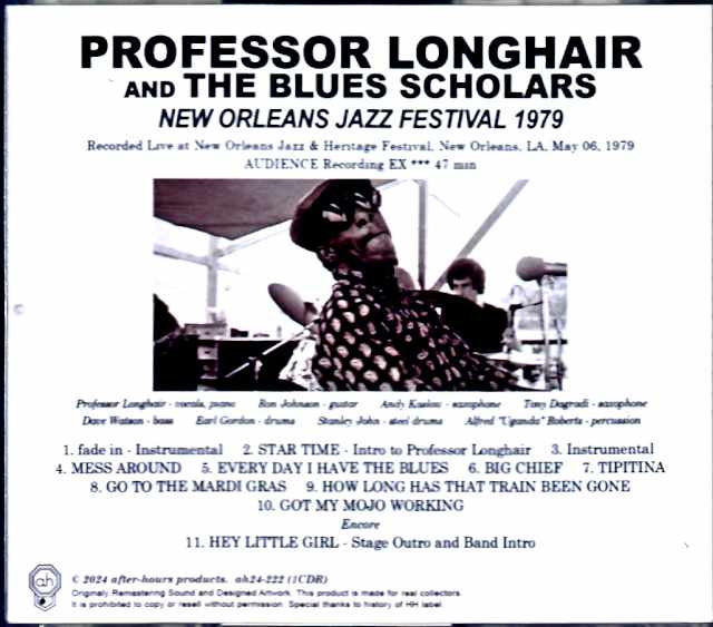 Professor Longhair, a New Orleans giant who influenced Allen Toussaint, Dr. John, and the Meters, has come down with a superb live performance with a unique style and unique vocals that mix blues, rumba, and calypso, backed by the Blues Scholars, a skilled group representing New Orleans, and a superb live performance approaching funky with a superb high-quality sound board! ! This work is about half a year before his sudden death, about the largest music festival in New Orleans, the Professor’s last stage and almost the last legendary concert at the New Orleans Jazz and Heritage Festival on May 6, 1979, which the Professor also appeared every year since his revival in 1971. This god item has been completely recorded up to the encore with the superb high-quality sound that has been carefully mastered by the label! ! First, the extremely groovy The Blues Scholars play one song, and finally the Professor descends! You can enjoy the full-length performance that perfectly combines the unique piano style that mixes rumba, mambo, and calypso, the unique vocals, and the funky performance of Scholars. The live performance recorded at the largest festival in New Orleans, the hometown, creates a superb mood with the master’s generous and silver-smoked playing, and the piano that seems to be played lightly but has a solid attack, and the groove of the funky Scholars that is simple and does not increase the number of sounds, is the essence of New Orleans, and the unique melancholy also brings a rich depth to the sound itself. From the famous songs “Tipitina”, “Big Chief”, “Go to Mardi Gras”, to “Got My Mojo Working”, it teaches you the essence of good-humored New Orleans music! !