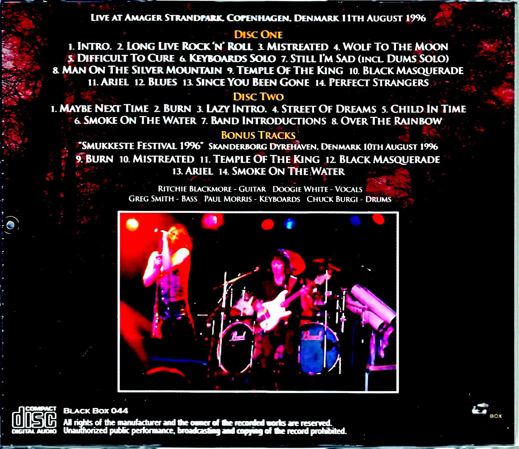 RAINBOW in the 1990s was the culmination of Ritchie Blackmore’s HR. A new masterpiece born from Denmark, an unknown center, has been decided to be permanently preserved. This work is engraved with the “August 11, 1996 Copenhagen performance”. It is a superb audience recording from the appearance at the Danish rock festival “GIANTS OF ROCK”. RAINBOW, who raised the signal of revival with “Solitary Stranger” in the summer of 1995, also started touring. It took about 20 months and a total of 74 performances to tour the world. First of all, as always, let’s look back from the overall picture of the activity and understand the position of the show. 1995: August release of “Solitary Stranger” September 30-November 4: Europe #1 (25 performances) ←※ Official video November 11-23: Japan (9 performances) 1996: June 27-July 7: South America (8 performances) July 21-August 11: Europe #2 (13 performances) ←★ Here ★《Chuck Burge leaves the band → John Miceli joins》 1997: February 20-March 19: North America (18 performances) May 31: Denmark (final performance)《RAINBOW disbands → BLACKMORE’S NIGHT starts》This is the full view of RAINBOW’s activities that were revived in the 90s. Denmark is the only country where live performances were held in three sections in 1995 / 1996 / 1997, and the “GIANTS OF ROCK” performance of this work is in the middle. This was the final concert of “Europe #2”, and also the final performance of veteran Chuck Bahgi, who knew RAINBOW in the 1980s. This work, recorded at such a special site, has a special sound. It is a new master that has only recently been distributed, but it is already super direct. The core is extremely thick, there is no sparse feeling in the sound, and the details are fine. You can hear the lively applause as if hiding in the shadow of the powerful performance sound, so you won’t mistake it for a sound board, but you will want to mistake the strength and closeness. What is particularly striking is “Mistreated”. Here, the echo is applied deeply to the guitar and vocals, and you can clearly tell when the on-site engineer turned the knob. The bass and the gritty attack sound are clear and beautiful, and it is a beautiful recording that is not only powerful but also incredibly delicate. The beautiful sound is drawn with a full show unique to 1996. In fact, this work not only includes the full version from the final day (August 11th), but also five bonus songs from the previous day (August 10th) in Denmark. Let’s organize them together here. Lonely Stranger Wolf To The Moon/Still I’m Sad/Black Masquerade (★)/Ariel (★) Other Classics Ronnie era: Long Live Rock ‘n’ Roll/Man On The Silver Mountain/Temple Of The King (★) Graham era: Since You Been Gone Joe era: Difficult To Cure/Maybe Next Time/Street Of Dreams Purple era: Mistreated (★)/Perfect Strangers/Burn (★)/Smoke On The Water (★) *Note: The “★” mark indicates a song that can be listened to in two takes (August 10th and 11th). …And so on. “Mistreated”, “Street Of Dreams” and “Maybe Next Time” which can’t be heard in the official video “BLACK MASQUERADE” are also delicious, but what is even more explosively 1996-like is the opening “Long Live Rock ‘n’ Roll”. Even at the Japan tour, depending on the venue, it was “Spotlight Kid” or “Too Late For Tears”, but 1996 was also different depending on the magnetism. Since it’s a good opportunity, let’s organize the changes in the opening songs here. September to November 1995: “Spotlight Kid” starts (Europe #1/Kitakyushu, Japan) November: “Too Late For Tears” starts (Yokohama, Japan and after) June to July 1996: “Too Late For Tears” starts (South America) July to August: “Long Live Rock ‘n’ Roll” starts (Europe #2) ←★Here★ February to May 1997: “Spotlight Kid” starts (North America/Denmark) As mentioned above, there are only three opening songs. “Long Live Rock ‘n’ Roll” starts only in “Europe #2” and is also a symbol of this tour. This work closes with a recording on the previous day, “August 10th”, which is as superb as the main part. This is a new masterpiece that allows you to enjoy the precious “1996 European RAINBOW” with the superb quality that goes “like a sound board”. The last season when Richie was burning as a hard rock guitarist. The best audience recording of the “GIANTS OF ROCK” performance on August 11, 1996. It is a very direct new master that has only appeared recently. The core is very thick, there is no sparse feeling in the sound, and the details are fine. In “Mistreated”, the guitar and vocals have a deep echo, but you can clearly tell when the on-site engineer turned the knob. It is a new masterpiece that opens with “Long Live Rock ‘n’ Roll” and allows you to enjoy a delicious full show of “Mistreated” and “Street Of Dreams”. Live at Amager Strandpark, Copenhagen, Denmark 11th August 1996 TRULY PERFECT SOUND Disc 1 (76:36) 1. Intro 2. Long Live Rock ‘n’ Roll 3. Mistreated 4. Wolf To The Moon 5. Difficult To Cure 6. Keyboards Solo 7. Still I’m Sad (incl. Dums Solo) 8. Man On The Silver Mountain 9. Temple Of The King 10 . Black Masquerade 11. Ariel 12. Blues 13. Since You Been Gone 14. Perfect Strangers Disc 2 (63:45) 1. Maybe Next Time 2. Burn 3. Lazy Intro 4. Street Of Dreams 5. Child In Time 6. Smoke On The Water 7. Band Introductions 8. Over The Rainbow Bonus Tracks “Smukkeste Festival 1996” Skanderborg Dyrehaven, Denmark 10th August 1996 9. Burn 10. Mistreated 11. Temple Of The King 12. Black Masquerade 13. Ariel 14. Smoke On The Water Ritchie Blackmore – Guitar Doogie White – Vocals Chuck Burgi – Drums Greg Smith – Bass Paul Morris – Keyboards