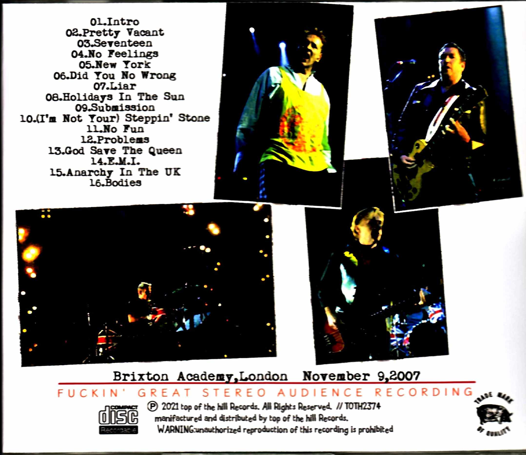 From the 2007 reunion gig, the Brixton performance the day before the recording of the official DVD “There’ll Always Be An England” is now available as a treasured sound source recorded in high quality stereo audience recording! From the 2007 reunion held to commemorate 30 years since the release of the album “Katte ni Shiyagare”, a treasured sound source that recorded the live performance held at Brixton Academy in London on November 9th in high quality stereo audience recording is now available! As with the same label’s already released “FIRST NIGHT OF THE BRIXTON 07” which recorded the live performance the day before, it was recorded from the low gene master, and with a wide range and deep sound image, you can enjoy the powerful high quality sound that contains the roaring sound that resonates on the floor in a well-balanced manner with vocals, choruses, and each part! In October 2007, they held a private gig and performed in Brixton for five days from November 8th. The live performance on the 10th was released as a regular DVD “There’ll Always Be An England”, but this work records the live performance on the second day of the Brixton consecutive performances the day before. Like the first day’s sound source, it is recorded from the SE announcing the opening, and as you can see in the video on the 10th, the packed audience heats up even before the show starts! In the interlude of the opening number “Pretty Vacant”, there is also a scene where the SE “Hello, Brixton. My name is John” is inserted. “Did You No Wrong” is played with an arrangement that adds backing chorus, and there are plenty of things to listen to! Completely uncut until the last encore Bodies! Brixton Academy,London November 9,2007 01.Intro 02.Pretty Vacant 03.Seventeen 04.No Feelings 05.New York 06.Did You No Wrong 07.Liar 08.Holidays In The Sun 09.Submission 10.(I’m Not Your) Steppin’ Stone 11.No Fun 12.Problems 13.God Save The Queen 14.E.M.I. 15.Anarchy In The UK 16.Bodies