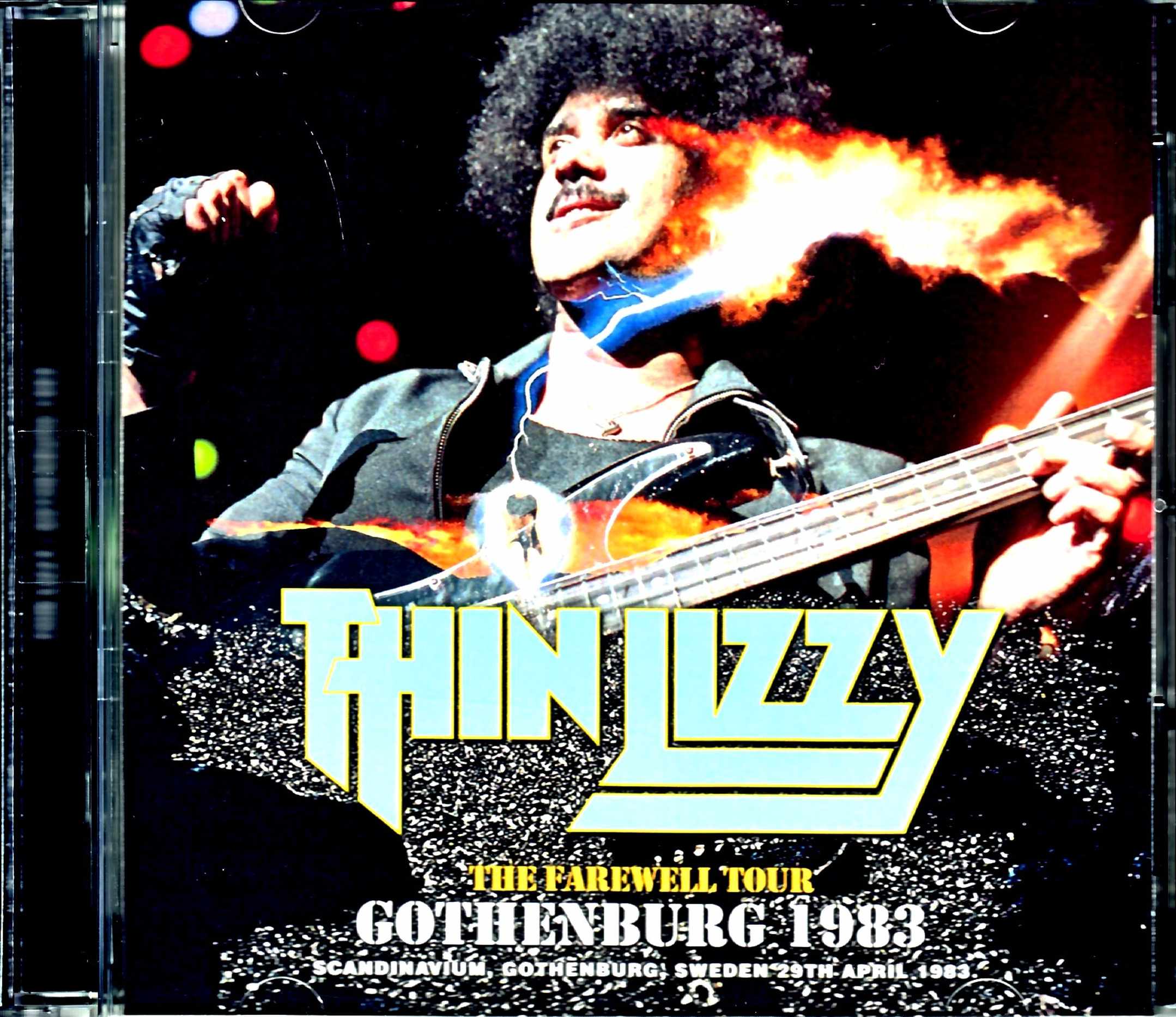 THIN LIZZY in 1983, who welcomed the young hero John Sykes and tried to decorate the beauty of excellence. A new excavation live album that allows you to fully experience the scene is here. This work is recorded in “Gothenburg performance on April 29, 1983”. It is a powerful audience recording. Speaking of the Sykes era, the two official live albums “LIFE” and “BBC RADIO ONE” and the Hitchin performance pro shot are famous. First of all, let’s use them as a foothold to grasp the position of the show. 1982 (September: John Sykes joins) 1983 January 26th – March 3rd: UK #1 (21 performances) ←※ Official Hitchin video March 4th “THUNDER AND LIGHTNING” released March 6th – April 10th: UK #2 (24 performances) ←※ Official LIFE / Dublin video April 27th – May 4th: Europe #1 (6 performances) ←★ Here ★ May 17th – 23rd: Japan (5 performances) (Once tour ended) August 28th – September 4th: Europe #2 (4 performances) ←※ Official BBC RADIO ONE This is the journey from John Sykes joining to the disbandment. For us, the performance in Japan in May is a memorable one, but the Gothenburg performance of this work was about three weeks before that. It was the third performance of “Europe #1”. This work, recorded at such a show, is a newly excavated master that jumped out of the much-talked-about “Barrhult” collection. It seems to be a 2nd generation master that is not recorded by Mr. “Barrhult” himself, but the on-on, powerful core has no sense of air at all, and each of the twin guitars is clear despite its power. Moreover, if there is no sense of sparseness, the density is dense, and when it gets quiet between songs, it is so clear that you can even hear the slight electromagnetic noise of “Zee” emitted from the amplifier. Since it is released as an audience recording, it is probably a customer record, but if you were to say “It’s an FM broadcast at that time,” you would believe it, and it is an extremely thick sound full of directness. The power sound depicts the full show of the farewell tour, which is different from the official live work. As you can see from the schedule above, the closest one is “LIFE LIVE,” so let’s organize it by comparing them. Classics (12 songs + α) Night Life: Sha La La (★) / Still In Love With You Fighting!!: Suicide (★) / Rosalie (★) Jailbreak: Jailbreak / Cowboy Song (★) / The Boys Are Back In Town / Emerald Others: Whiskey In The Jar (★) / Dancing In The Moonlight (★) / Are You Ready / Baby Drives Me Crazy (★) / Waiting For An Alibi / Angel Of Death Thunder and Lightning (6 songs) Thunder and Lightning / Baby Please Don’t Go / This Is The One (★) / The Holy War / The Sun Goes Down / Cold Sweat *Note: Songs marked with “★” are not available on the official album “LIFE LIVE”. …And so on. “Whiskey In The Jar” and “Dancing In The Moonlight” are medleys from “Rosalie”, so they are not played in full, but even so, there is a lot of variety. The new song “This Is The One” is a repertoire that cannot be heard even on “BBC RADIO ONE”, and “Sha La La” and “Baby Drives Me Crazy” were not even included in the professional shot footage of the Hitchin/Dublin performances. You can enjoy even the Sykes version of such a rare song with a thick sound like a soundboard. Next year will be the 40th anniversary of the disbandment of THIN LIZZY. During the farewell tour, various masterpieces were performed in various places to conclude the glorious history. Not only can you fully experience the scene with a thick sound, but it is also an indispensable item for rare song collections that do not have a soundboard. A unique personality that is still unparalleled. A thick audience recording of “Gothenburg performance on April 29, 1983”. It is a newly excavated 2nd generation master, and the strong core on the on has no sense of air at all, and each twin guitar is clear while being powerful. Moreover, if there is no sense of sparseness, the density is also dense, and it is an extremely tight sound like a soundboard. You can fully experience the delicious farewell tour with rare Sykes versions of songs such as “This Is The One”, “Sha La La”, and “Baby Drives Me Crazy” that you can’t hear on “LIFE” or “BBC RADIO ONE”. Scandinavium, Gothenburg, Sweden 29th April 1983 TRULY PERFECT SOUND Disc 1(59:32) 1. Intro 2. Thunder and Lightning 3. Waiting for an Alibi 4. Jailbreak 5. Baby Please Don’t Go 6. This Is the One 7. Angel of Death 8. Are You Ready 9. The Holy War 10. The Sun Goes Down 11. Cold Sweat 12. Cowboy Song 13. The Boys Are Back in Town Disc 2(47:58) 1. Suicide 2. Sha La La 3. Drum Solo 4. Emerald 5. Baby Drives Me Crazy 6. Still in Love With You 7. Rosalie 8. Whiskey in the Jar 9. Dancing in the Moonlight Phil Lynott – Bass, Vocals John Sykes – Guitar Scott Gorham – Guitar Brian Downey – Drums Darren Wharton – Keyboards