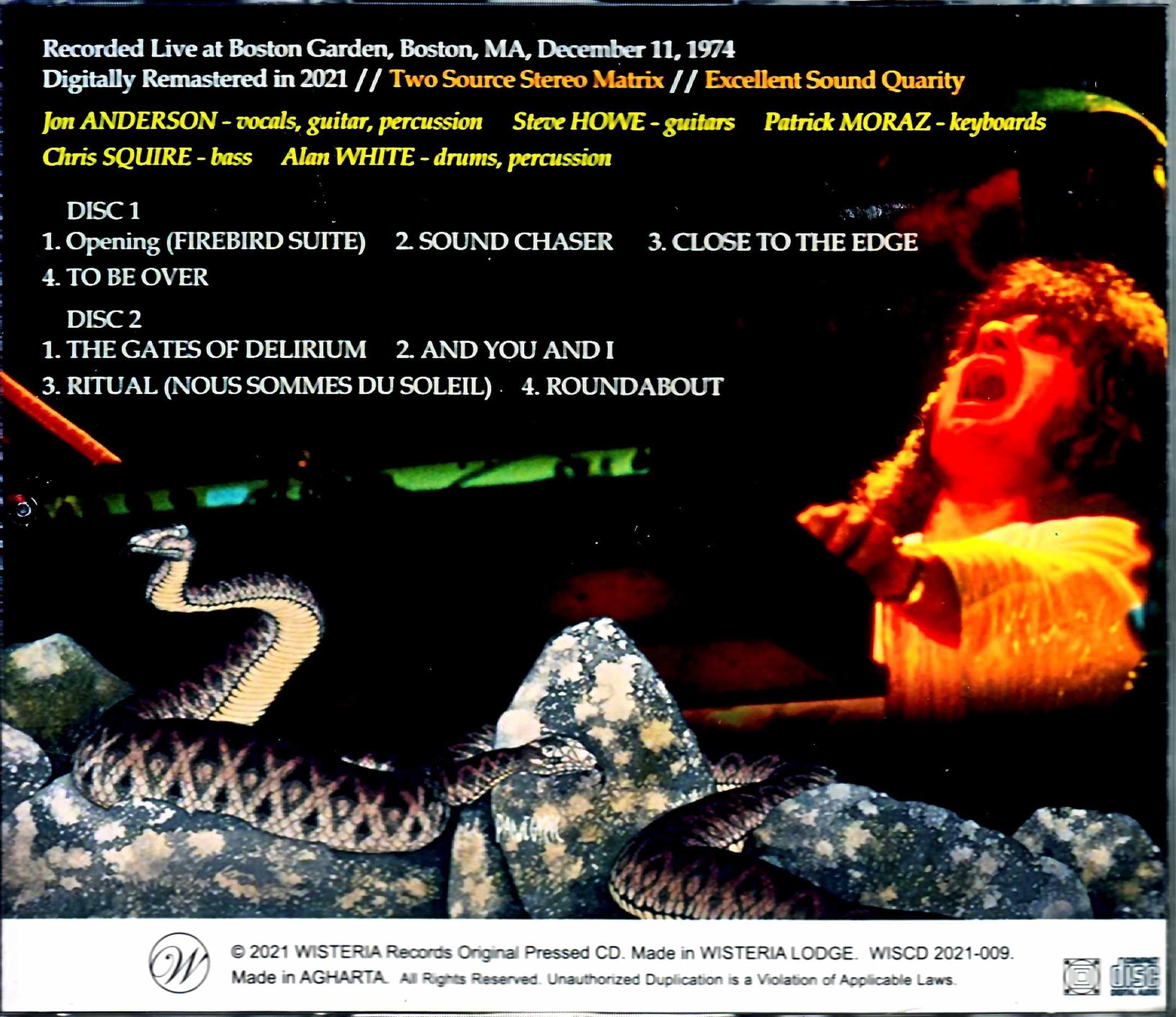 This is a high-quality sound source rarely seen in the history of Yes’s live sound source. It is the strongest sound source that is not suitable for the clarity and resolution of a sound board, and even less suitable for the sense of presence of a high-quality audience sound source such as Mike Millard tape. This is the latest mix sound source for 2021, which carefully combines the best parts of them. This is a matrix sound source created by the fusion of the audience and soundboard. If you’re a seasoned enthusiast who has collected a wide range of Jesus collector’s items, you might be thinking, “Boston Garden in 1974? Oh, there’s a high-quality radio one out there.” However, it is a sound source that I would like people who think that way to listen to. A superb sound source that combines the splendor of instrument separation and the presence of the venue. The radio sound source had a guitar on the right, but it was probably John Anderson in the center facing the stage, Steve Howe on the left, Chris Squire and the keyboard on the right (Patrick Moraz here). This sound source is sorted like that. Moraz’s keyboard is captured more richly than previously released sound sources, and Howe’s guitar and the four sumo wrestlers can be seen everywhere. Furthermore, through remastering, the distorted bass of Chris’s edge is pushed out and the power is increased. As I’ve written many times before, the sound quality is astonishingly high. An item that looks like a clean copy of “Live recordings have to be like this”. The jacket is also excellent, following the tour theme album “Relayer”. One for every family, definitely the definitive item on Jesus’ relay tour. By the way, the same label has also released a title containing audience sound source by Mike Millard from the following year, which has also been well-received, so please check it out. At this time, Jesus’ keyboards had changed from John Wetton, who was popular, to Patrick Moraz, and Moraz’s improvisation, which went beyond Wetton’s established framework, was an attractive period. Therefore, you can enjoy the only one unique to live performances with different performances on different days. Recorded Live at Boston Garden, Boston, MA, December 11, 1974 Digitally Remastered in 2021 // Two Source Stereo Matrix // Excellent Sound Quality DISC 1 01. Opening (FIREBIRD SUITE) 02. SOUND CHASER 03. CLOSE TO THE EDGE 04. TO BE OVER DISC 2 01. THE GATES OF DELIRIUM 02. AND YOU AND I 03. RITUAL (NOUS SOMMES DU SOLEIL) 04. ROUNDABOUT Jon Anderson – vocals, guitar, percussion Steve Howe – guitars Patrick Moraz – keyboards Chris Squire – bass Alan White – drums, percussion